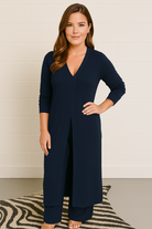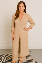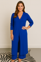 The flowing longline blouse adds a touch of understated elegance, while the airy trousers offer fluid movement and relaxed sophistication.