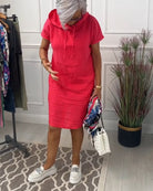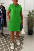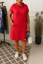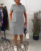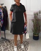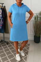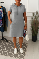 Effortlessly chic and ultra-comfortable, the Suzi Hooded Casual Dress is your go-to choice for sunny days and laid-back outings. Made from 100% breathable cotton, this knee-length shift dress features a relaxed fit, handy front pocket, and sporty drawstring hood. With its clean, solid color design and soft short sleeves, it's perfect for everyday wear – whether you're running errands, meeting friends, or just soaking up the summer vibes.