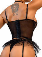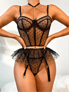 Our Amira polka dot lingerie set combines sexy with playfulness to create an irresistible look, enhanced by its choker with chains.