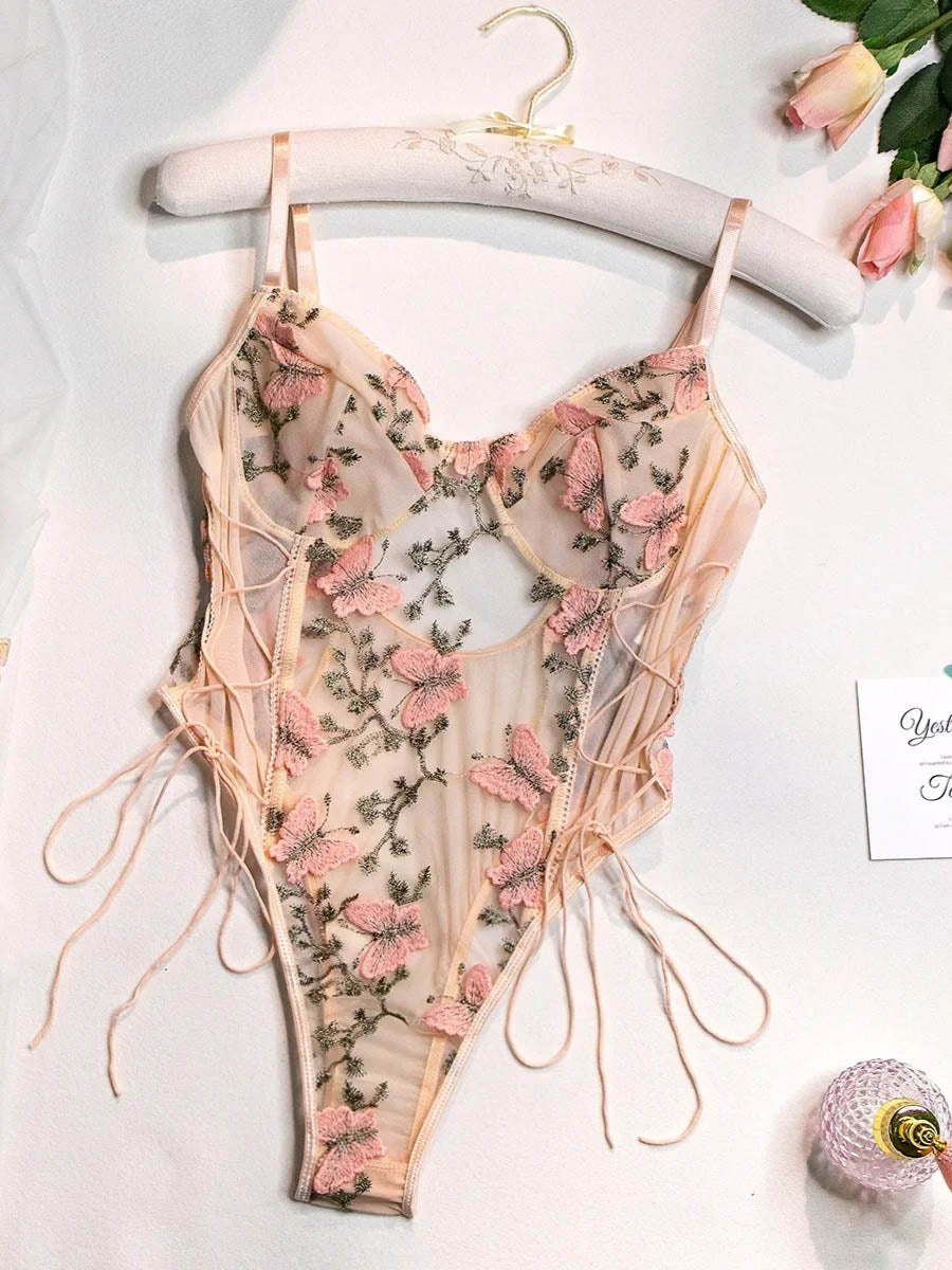 Get romantic with our Dua Bodysuit, where delicate lace meets intricate butterfly embroidery. Dua is crafted from comfortable semi-sheer mesh that embodies both grace and comfort. It is a timeless addition to your lingerie collection that will make you look stunning in an instant.