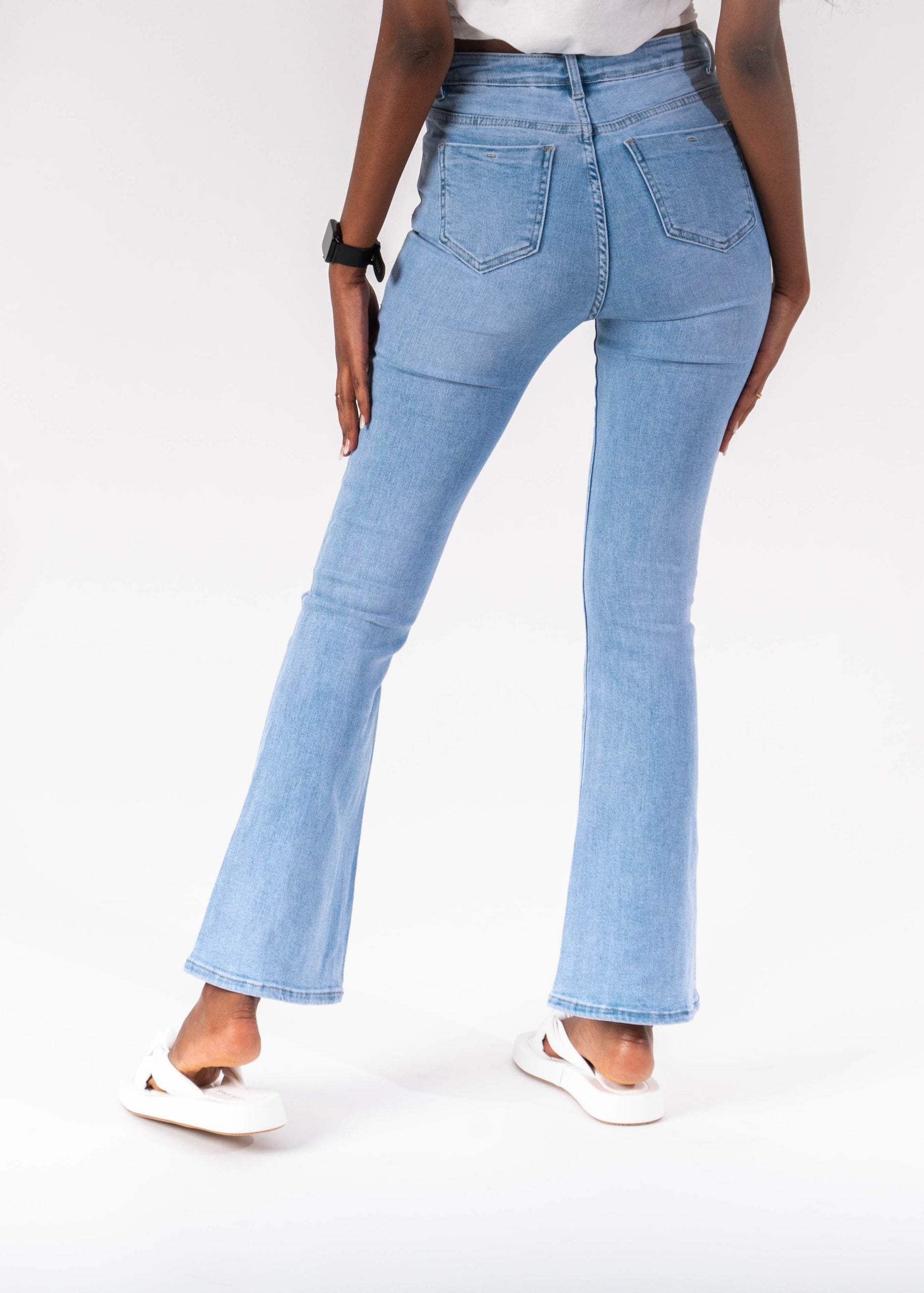 Elevate your denim game with the Flare Jeans – Light Blue. Designed with a flattering high-rise waist and a soft flare from the knee down, these jeans offer the perfect blend of vintage charm and everyday comfort. The premium stretch denim hugs your curves while giving you freedom to move — from laid-back afternoons to stylish evenings out.