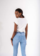The light blue wash adds a relaxed, sun-kissed vibe that pairs effortlessly with everything from tees to tailored tops.