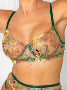 Meet our stunning Heather lingerie set. Heather features delicate floral embroidery overlaid on sheer mesh panelling for a super chic and sexy look. You will surely make a statement with this eye-catching set.