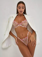 Bring some heat and passion to your wardrobe with our Zoë lingerie set. Zoë features delicate floral embroidery on semi-sheer mesh and cut-out details on the bra. Zoë is here to make you feel empowered and irresistible.